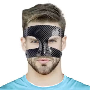Karbon Yüz Maskesi: Kişiye özel ölçü alınarak üretilen ve prova ile teslim edilen, burnu ve elmacık kemiklerini koruyucu karbon maske ortezidir. Yüzün korunması gereken bölgesine özel olarak üretilir. görüşü kısıtlamaz, darbelere karşı koruyucudur.